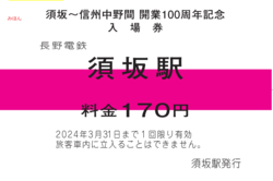 ニュースリリース 須坂~信州中野間開業100周年を記念した乗車券・入場券の発売とイベント開催について(2023年3月22日更新) 鉄道 鉄道 2023.03.22 ↑ 100周年記念乗車券 ↑ 100周年記念入場券セットの内、須坂駅入場券 ↑ 信州中野駅1番線ホーム(2019年撮影) ホームの時刻表には廃止当時の木島線時刻が掲出されています。 « 前のページへ ニュースリリース一覧へ戻る 次のページへ »